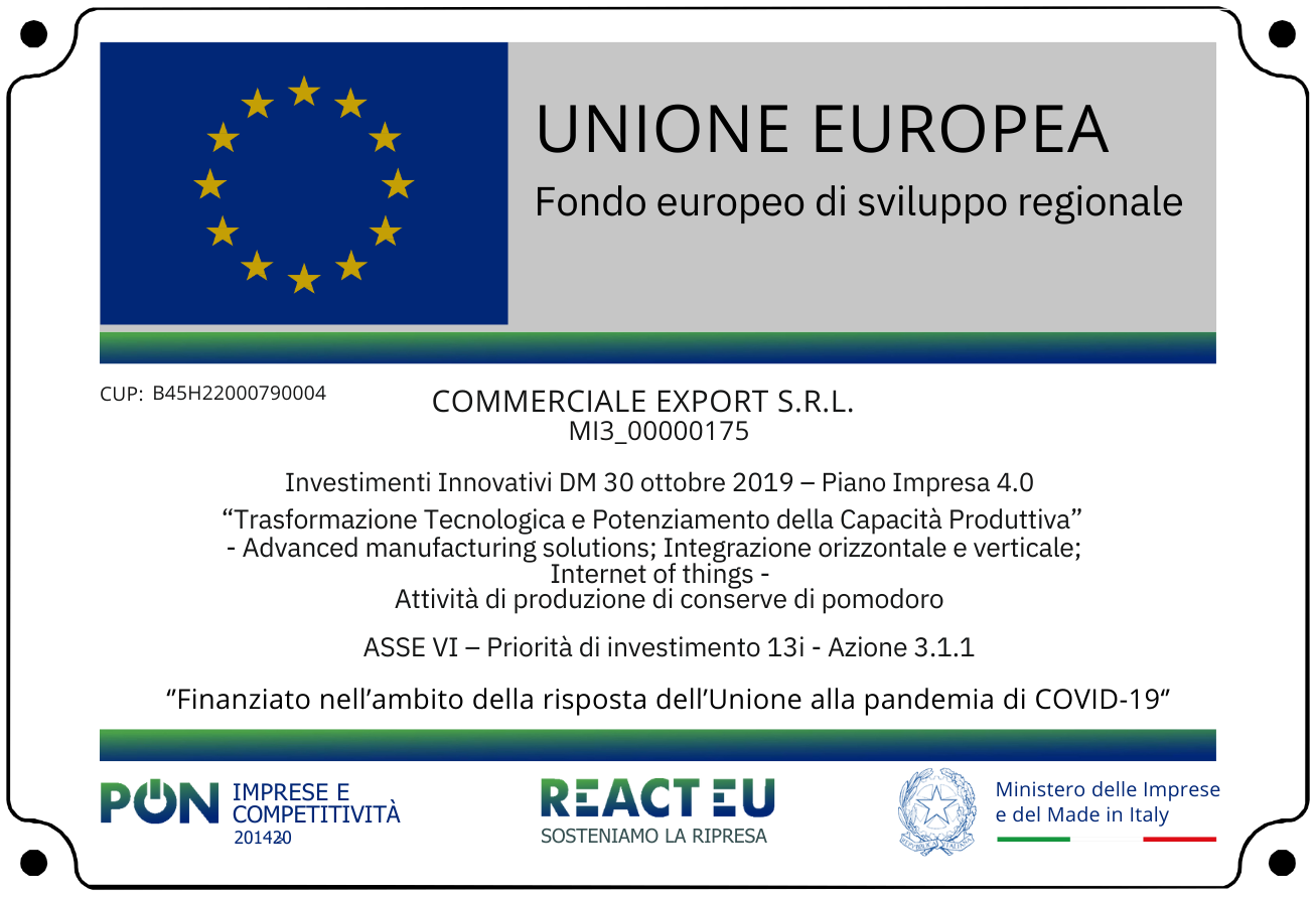 Il progetto finanziato a valere sul Bando Macchinari Innovativi (DM 30 ottobre 2019) è diretto, oltre che, alla produzione di pomodorino e del pelato, anche all’incremento di produzione di pomodoro San Marzano e dei Filetti. Gli investimenti in progetto, sono stati mirati alla realizzazione, all’implementazione e all’integrazione di nuovi impianti, macchinari e attrezzature, per il raggiungimento degli obiettivi di diversificazione dei prodotti offerti e di produttività. Gli investimenti previsti dall’impresa coinvolgono quasi la totalità dei reparti dell’azienda. In sintesi, sono stati raggiunti i seguenti risultati: